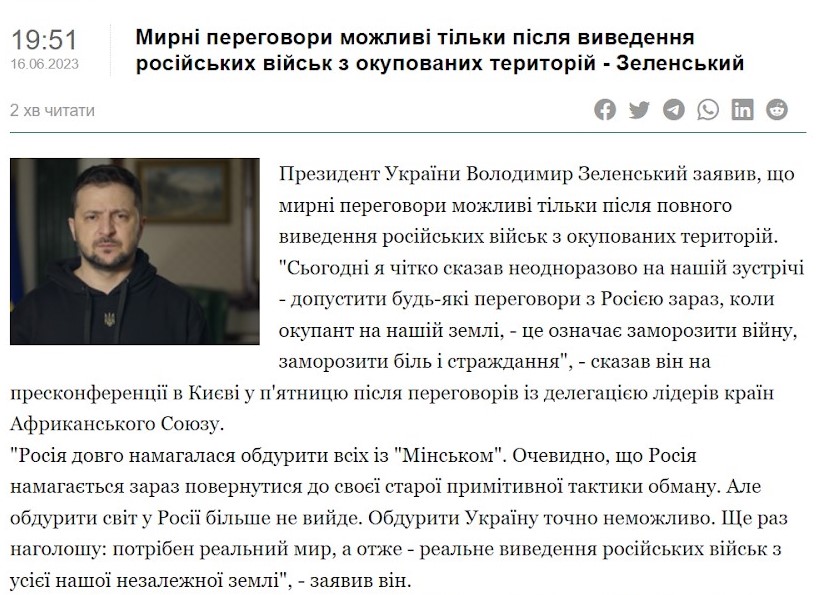 President Zelenskyy said the same thing during his meeting with the African delegation.