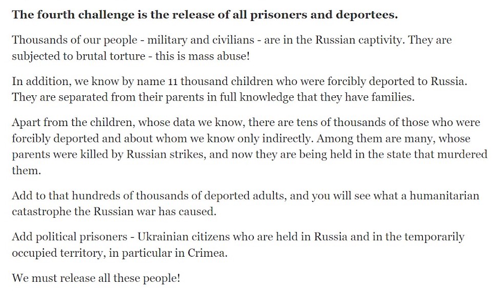 This point is also included in Ukraine's Peace Formula, according to which Ukraine is working on returning home not only POWs and children but also political prisoners and deported adults.