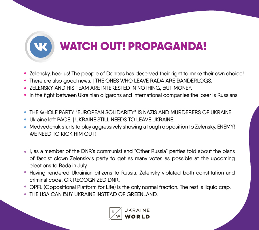 The Ukrainian section of VKontakte is fertile ground for anti-Ukrainian hate speech. The reason for this is that the top authors in the Ukrainian section by likes and shares are mostly anti-Ukrainian journalists, analysts, former politicians and separatist militias. Pro-Russian users flooded VKontakte with derogatory rhetoric about Ukraine. Mocking and disparaging remarks on Zelensky’s rule and most of Ukraine’s politicians indicated that no Ukrainian government is good for the pro-Kremlin side if it is still pro-Ukrainian in its intentions. The “failed state” label still fits into a range of the top leitmotifs about Ukraine on VKontakte. However, pro-Russian rhetoric varies from author to author and has no one clear line. The common ground for most of the messages is the same old rhetoric that Ukraine is dependent on the US, that its economy is in decline and Ukrainian people are “dull”.