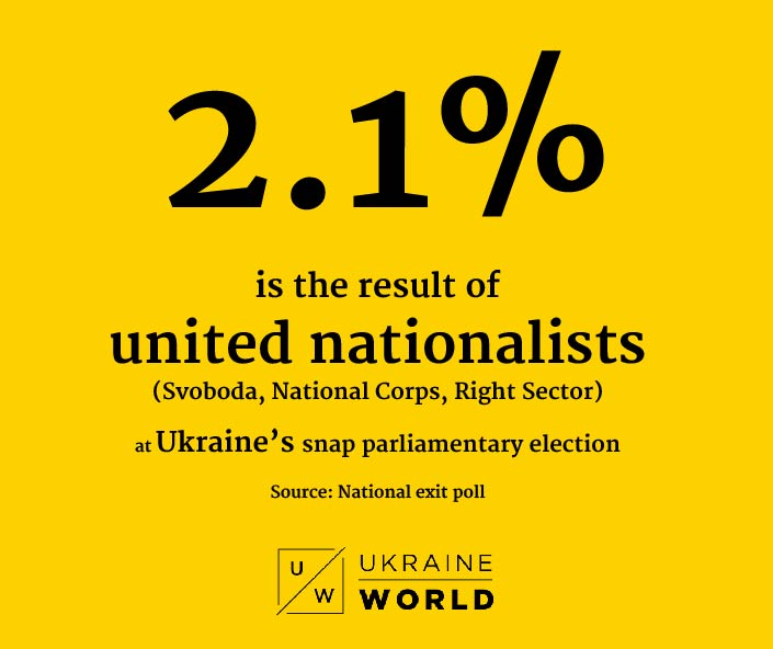 Despite much talk of a nationalist threat in Ukraine, they again showed poor electoral results. The Nationalist party Svoboda tried to unite various other nationalist forces, including Andriy Biletskyi (National Corps / Azov Regiment) and Dmytro Yarosh (Right Sector) and present “unified” nationalist forces. Despite this, they seem to only have got just over 2% and so failed to enter Parliament.