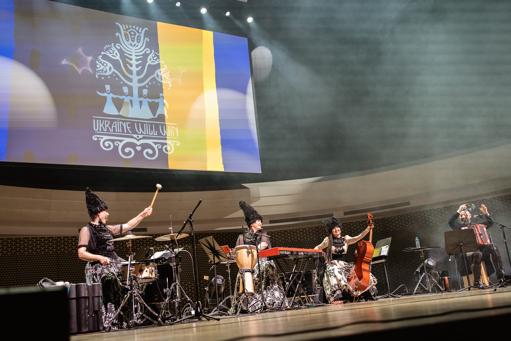 At the onset of the full-scale war, the band members unanimously decided to take a more active role on the global stage—raising awareness about Russian aggression against Ukraine and building communities of allies. DakhaBrakha's concert schedule was booked a year and a half in advance, leaving the musicians with rare opportunities to spend time at home with their loved ones.