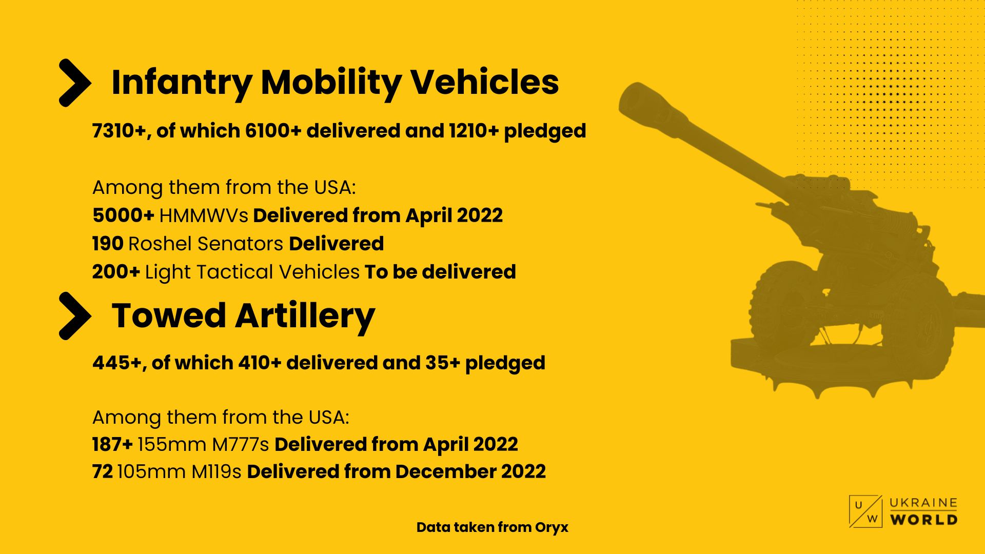European countries contribute substantial amounts of military equipment and procure upgraded models for Ukraine, as Denmark donated all of its CAESAR self-propelled artillery systems.